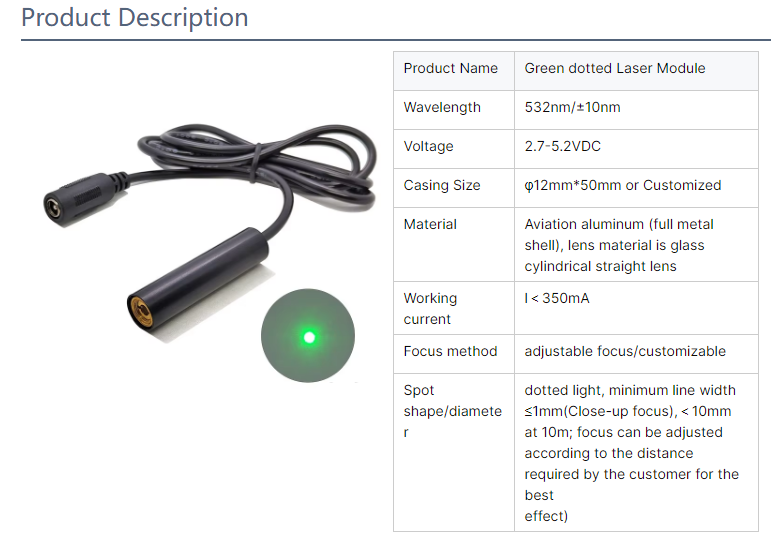 12X50mm laser module 532nm 50mW green laser module 532nm 50mW green laser module 532nm laser module custom green dot laser module 532nm laser module head Inquiry Send Email